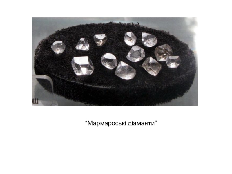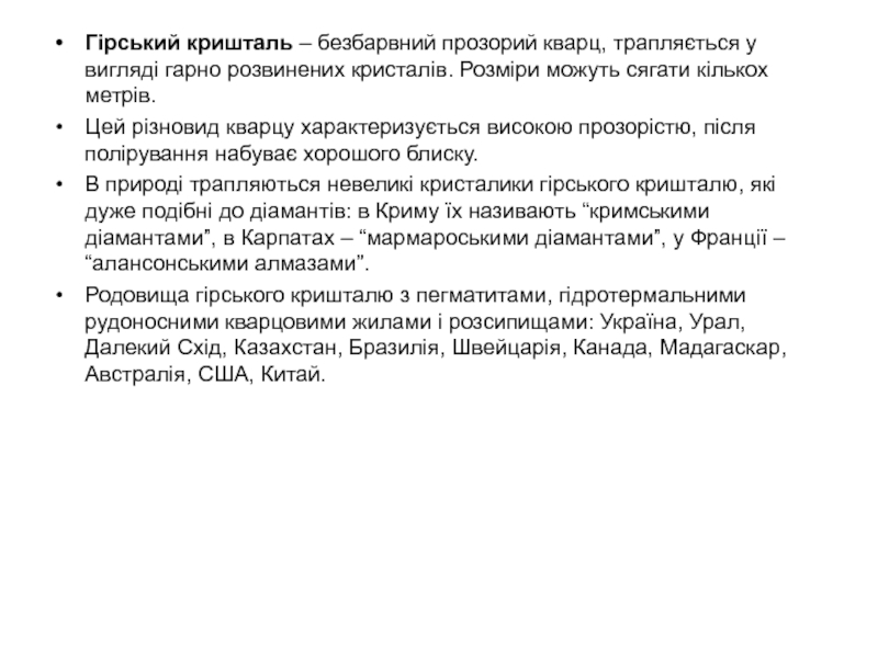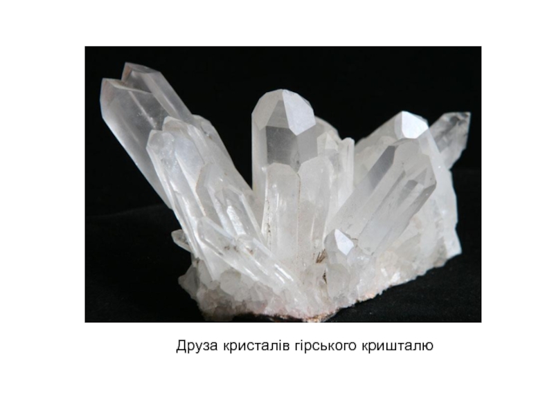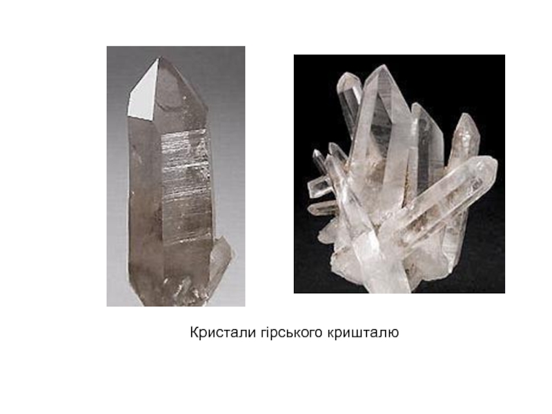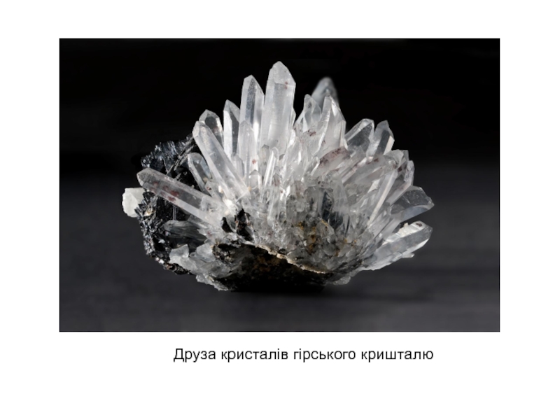 Слайд 4Гірський кришталь – безбарвний прозорий кварц, трапляється у вигляді гарно