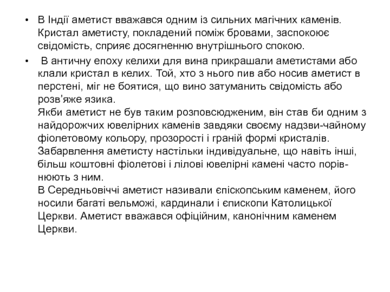 Слайд 24В Індії аметист вважався одним із сильних магічних каменів. Кристал