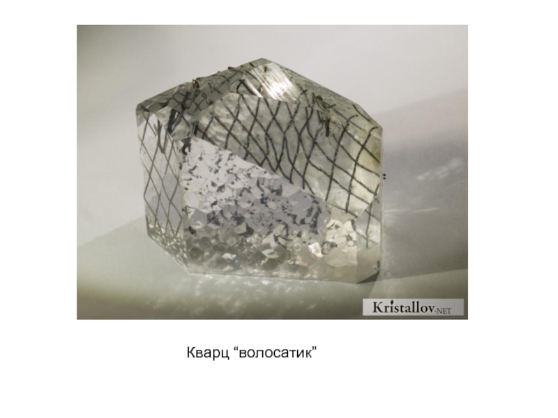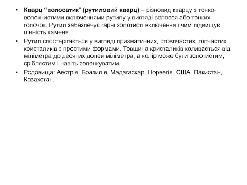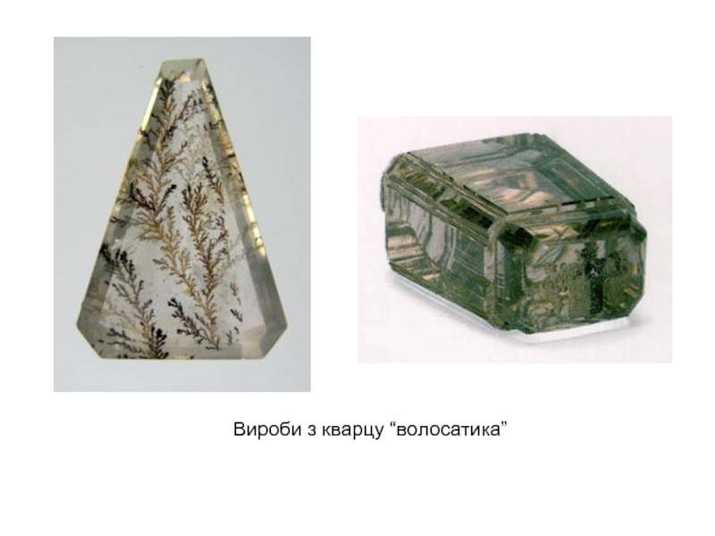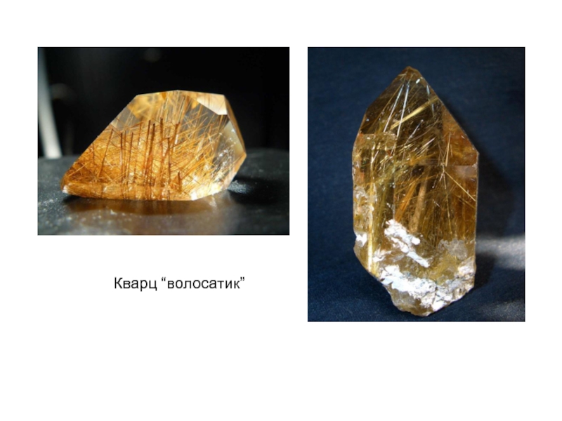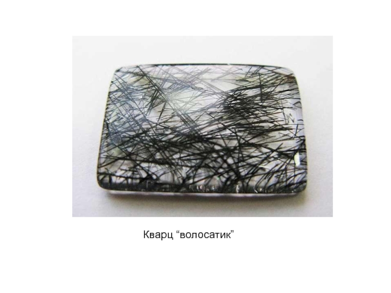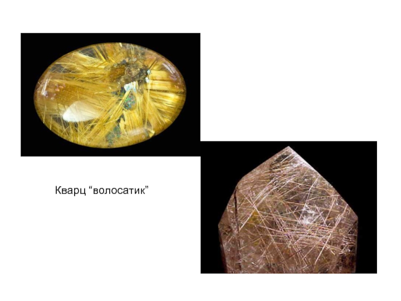 Слайд 75Кварц “волосатик” (рутиловий кварц) – різновид кварцу з тонко-волокнистими включеннями