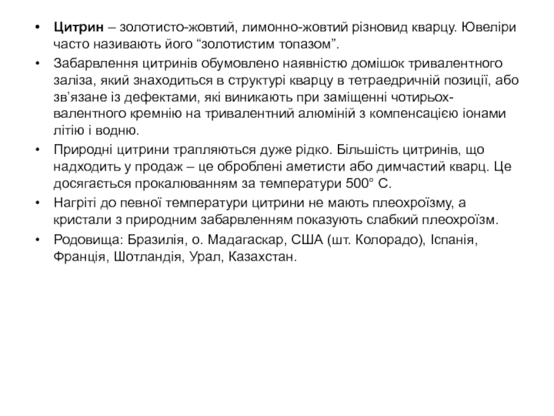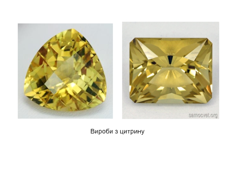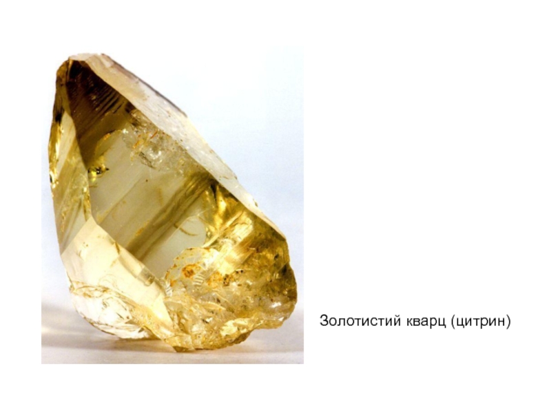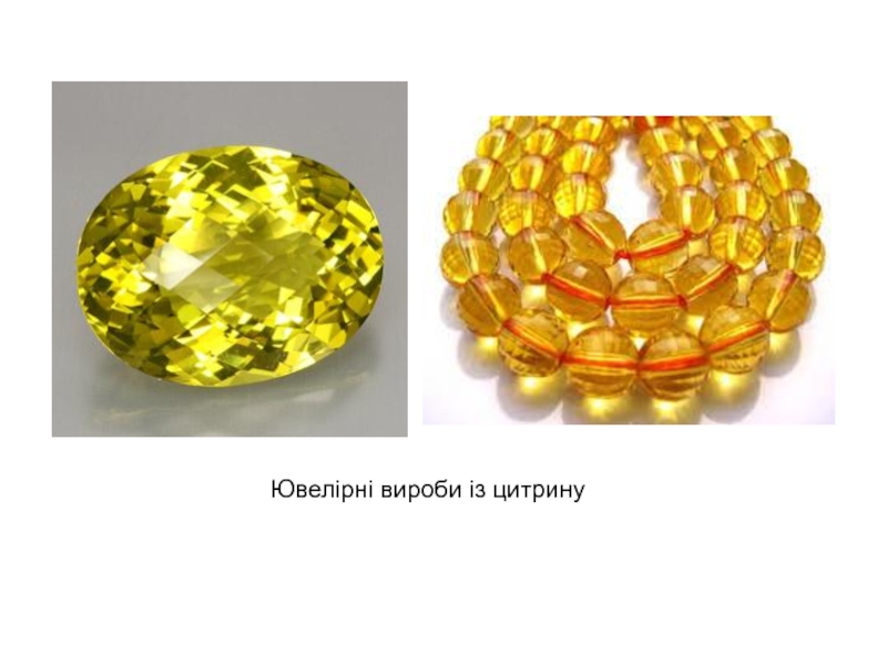Слайд 47Цитрин – золотисто-жовтий, лимонно-жовтий різновид кварцу. Ювеліри часто називають його