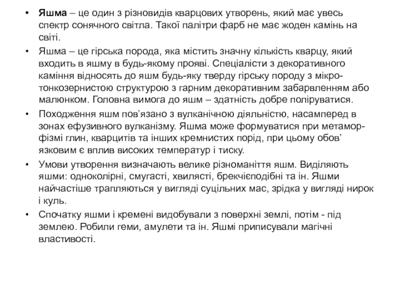 Слайд 88Яшма – це один з різновидів кварцових утворень, який має