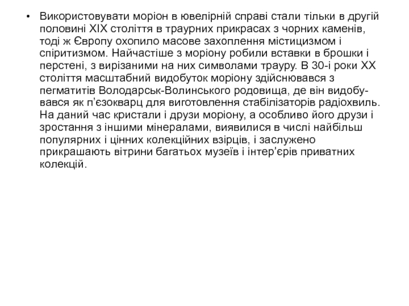 Слайд 19Використовувати моріон в ювелірній справі стали тільки в другій половині