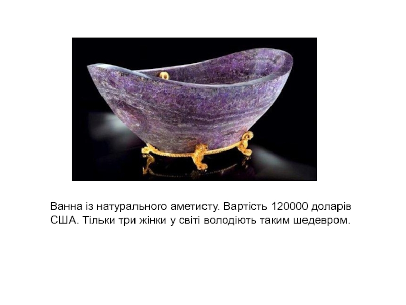 Слайд 40Ванна із натурального аметисту. Вартість 120000 доларів США. Тільки три
