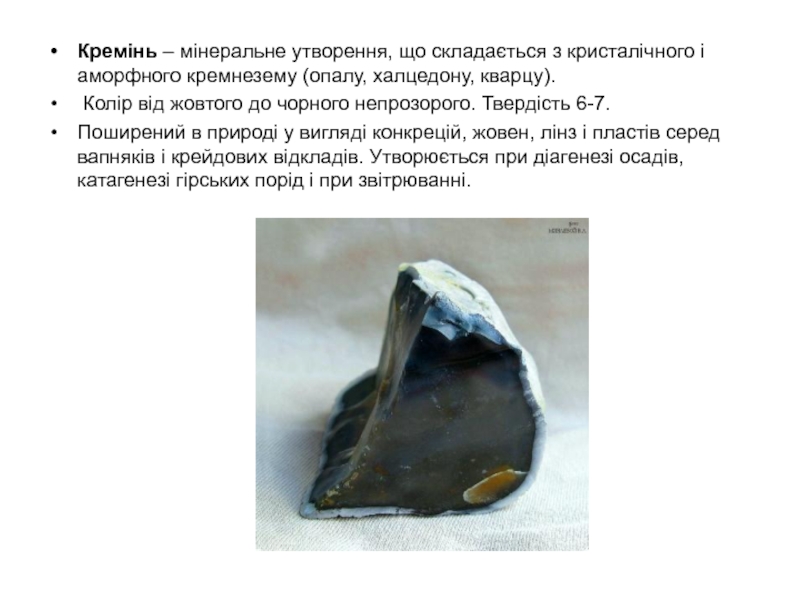 Слайд 81Кремінь – мінеральне утворення, що складається з кристалічного і аморфного