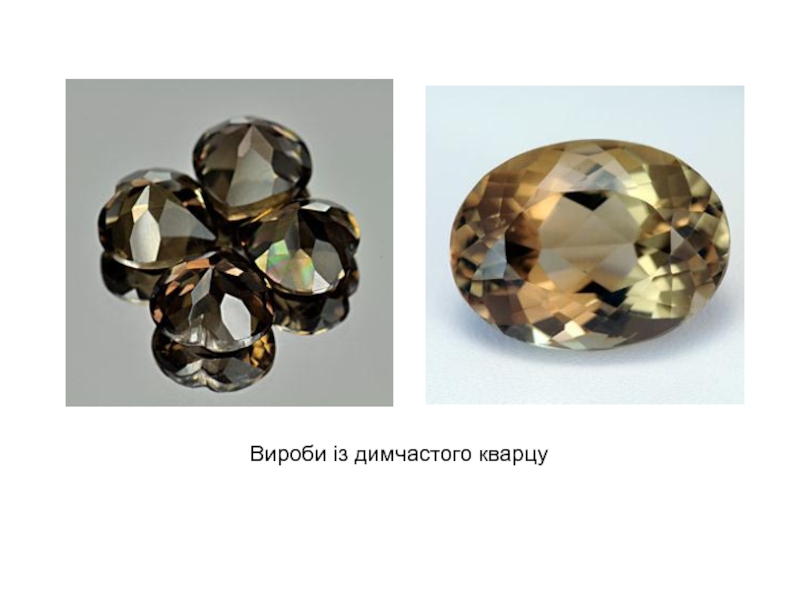 Слайд 12Димчастий кварц (раухтопаз) – це прозорий різновид сірого, коричнево-сірого кварцу.