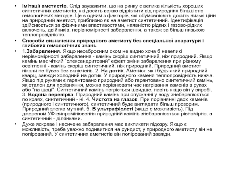 Слайд 46Імітації аметистів. Слід зауважити, що на ринку є велика кількість