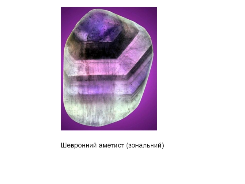 Забарвлення аметисту має радіаційну природу – заміщення Si4+ на Fe3+ з компенсацією заряду іонами лужних металів.