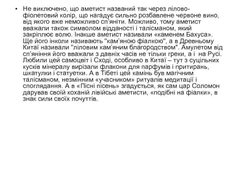 Слайд 23Не виключено, що аметист названий так через лілово-фіолетовий колір, що