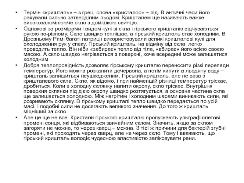 Слайд 6Термін «кришталь» – з грец. слова «кристалос» – лід. В