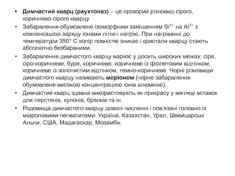 Слайд 13Димчастий кварц (раухтопаз) (Швейцарія)