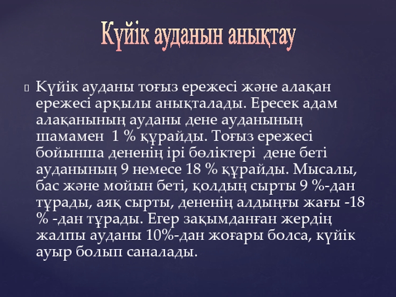 Күйік ауданын анықтау