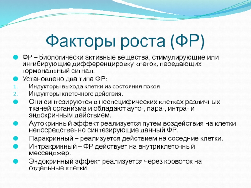 Важная роль в механизмах ауто- и паракринной регуляции функции не только овариальной, но и всей репродуктивной системы принадлежит фактором роста.