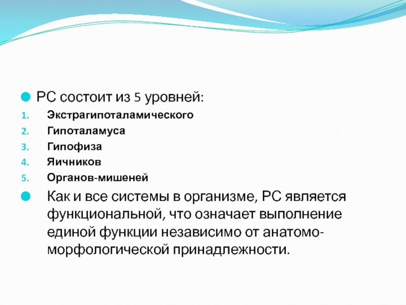 Слайд 7Основная роль в регуляции функции РС принадлежит гипоталамо-гипофизарной системе, которая