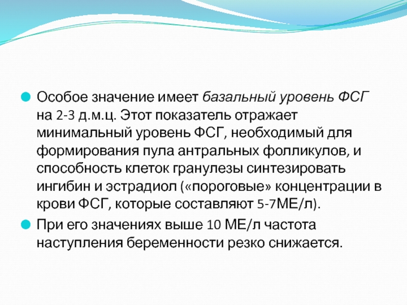 снижается, до повышения одновременно с ЛГ, к овуляторному пику.