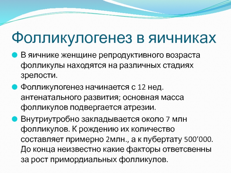 Доминантный фолликул характеризуется высокой концентрацией эстрадиола, а в атретичном фолликуле, наоборот, высока концентрация андрогенов.