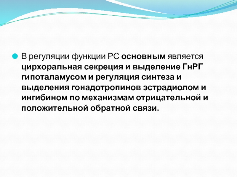 Слайд 57В регуляции функции РС основным является цирхоральная секреция и выделение