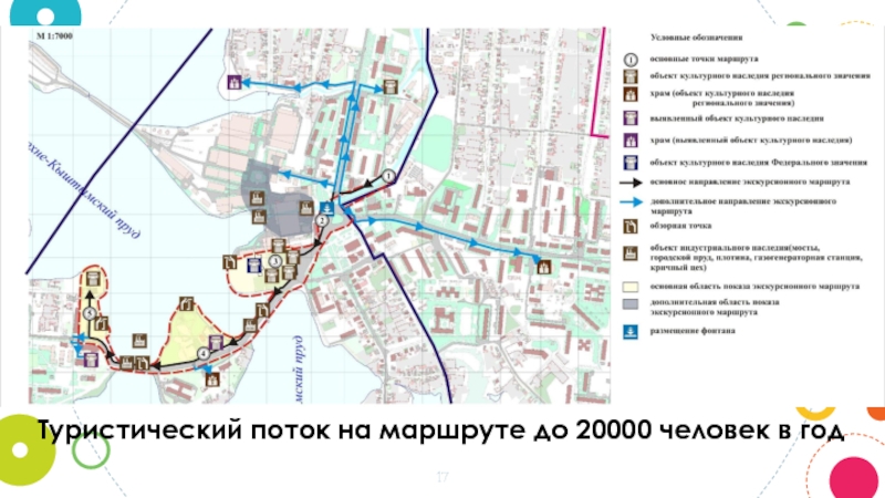 Слайд 17Туристический поток на маршруте до 20000 человек в год