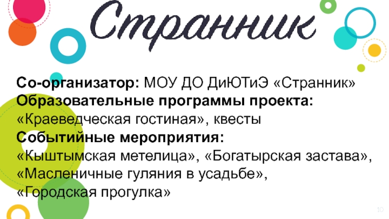Слайд 10Со-организатор: МОУ ДО ДиЮТиЭ «Странник»