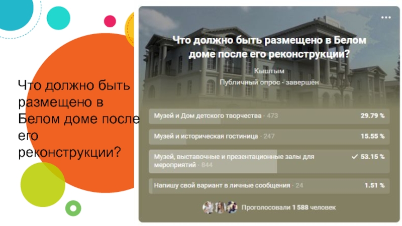Слайд 13Что должно быть размещено в Белом доме после его реконструкции?