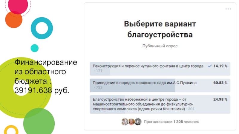 Слайд 14Финансирование из областного бюджета : 39191.638 руб.