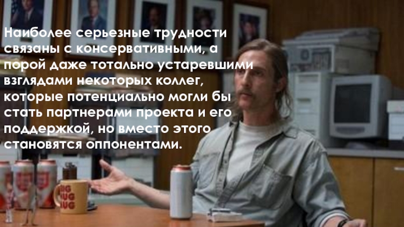 Наиболее серьезные трудности связаны с консервативными, а порой даже тотально устаревшими взглядами некоторых коллег, которые потенциально могли