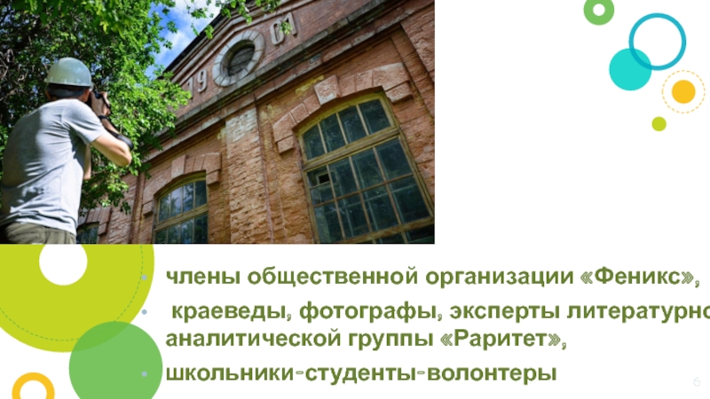 члены общественной организации «Феникс», краеведы, фотографы, эксперты литературно- аналитической группы «Раритет», школьники-студенты-волонтеры