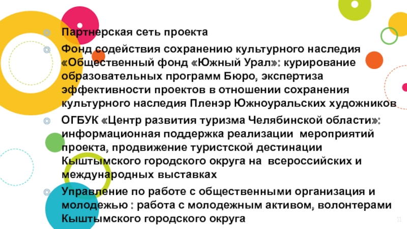 Партнерская сеть проектаФонд содействия сохранению культурного наследия «Общественный фонд «Южный Урал»: курирование образовательных программ Бюро, экспертиза эффективности