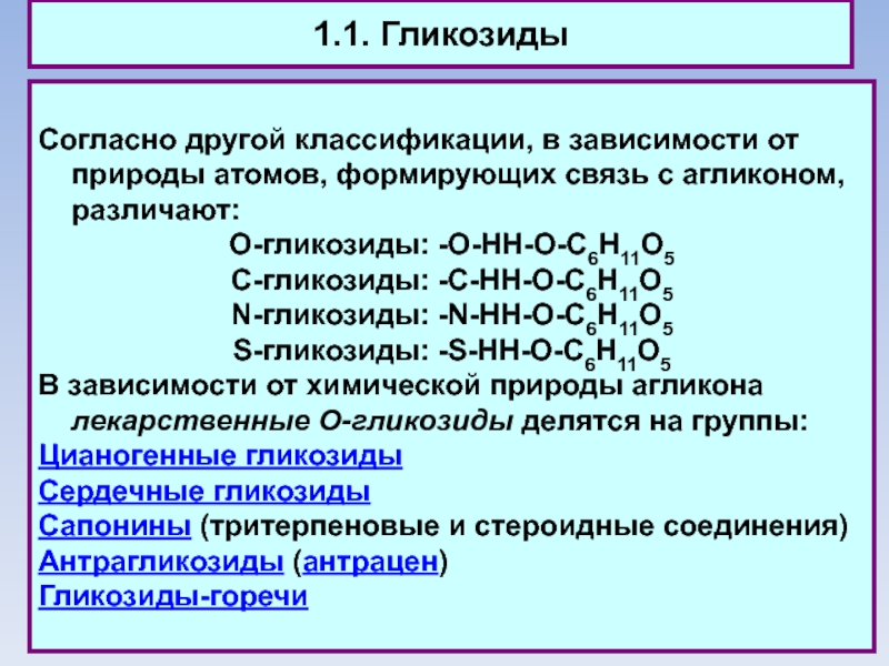 химической природы агликона лекарственные O-гликозиды делятся на группы: