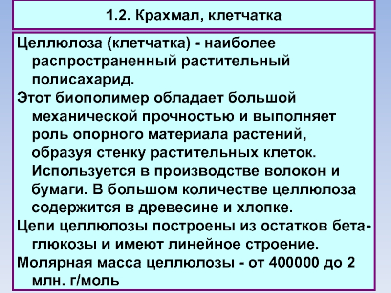 В растительном мире широко распространены полисахариды (целлюлоза, крахмал
