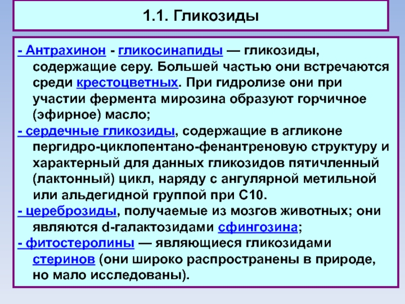- Антрахинон - гликосинапиды — гликозиды, содержащие серу. Большей частью