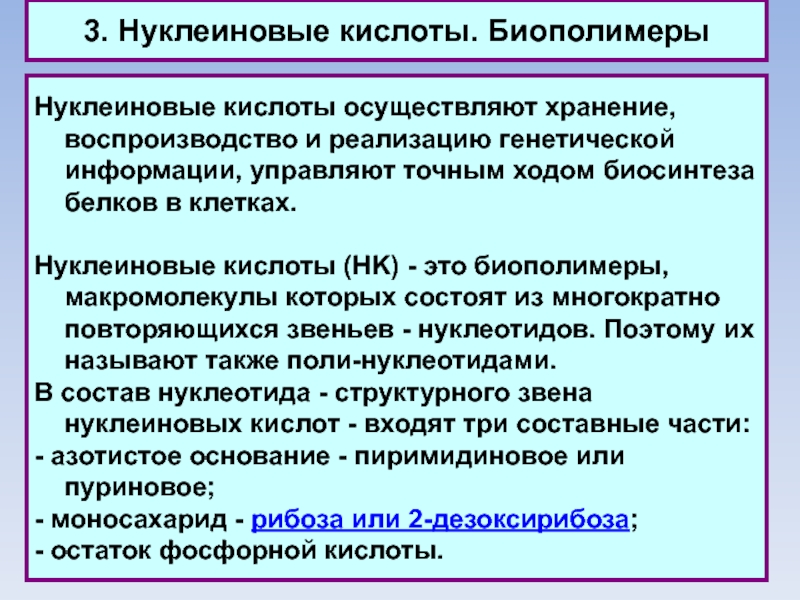 3.1. Нуклеиновые кислоты 3.2. ДНК. РНК
