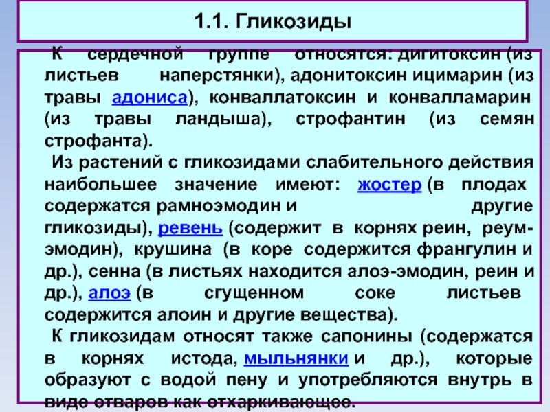 гликозиды обладают различным химическим составом, соединения с меньшим молекулярным весом