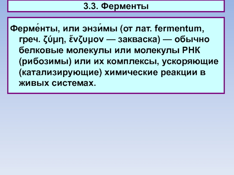 Ферме́нты, или энзи́мы (от лат. fermentum, греч. ζύμη, ἔνζυμον