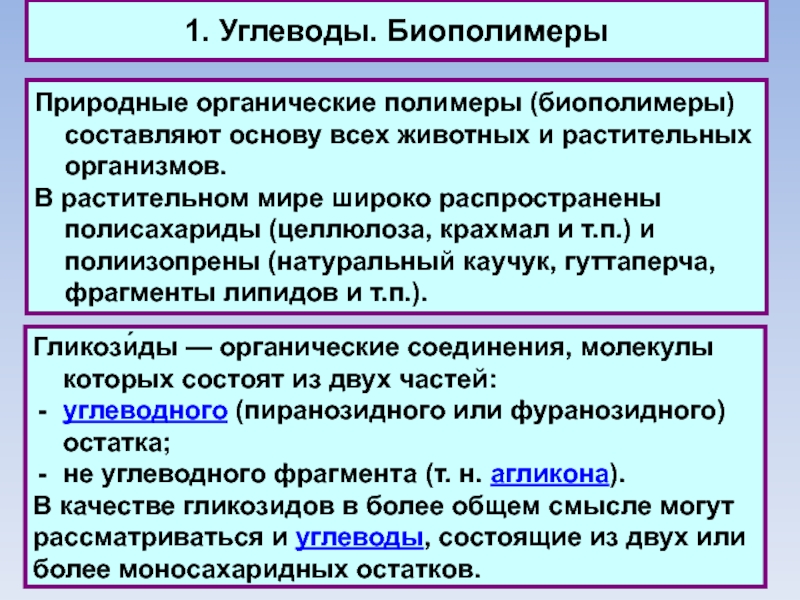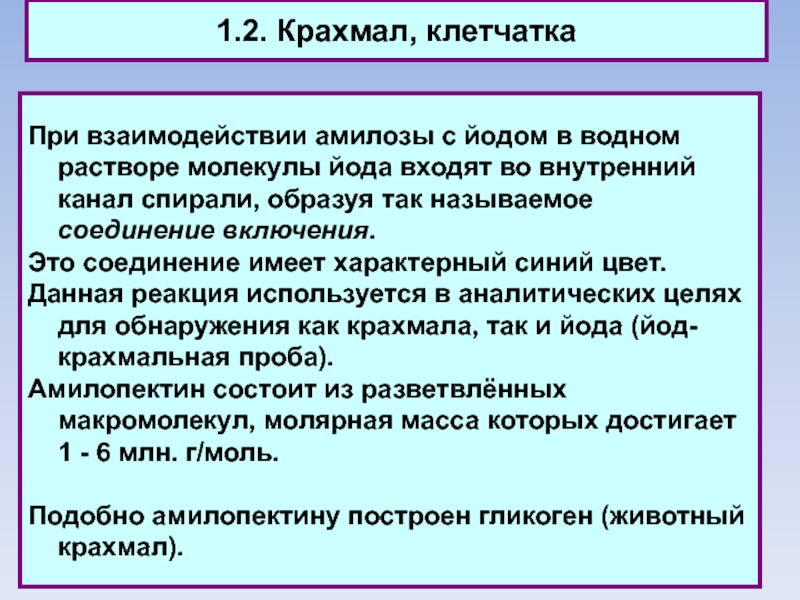 1.1. Гликозиды 1.2. Крахмал, клетчатка