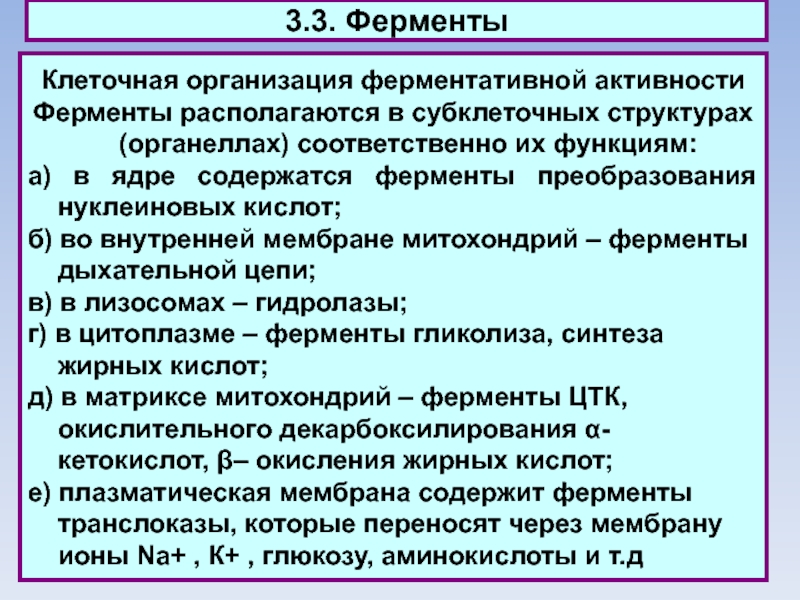 Ферменты располагаются в субклеточных структурах (органеллах)