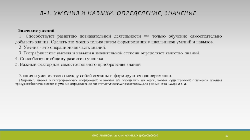 Слайд 10Константинова Т.В. к.п.н, КГУ им. К.Э. Циолковского