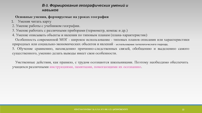 Слайд 22Константинова Т.В. к.п.н, КГУ им. К.Э. Циолковского