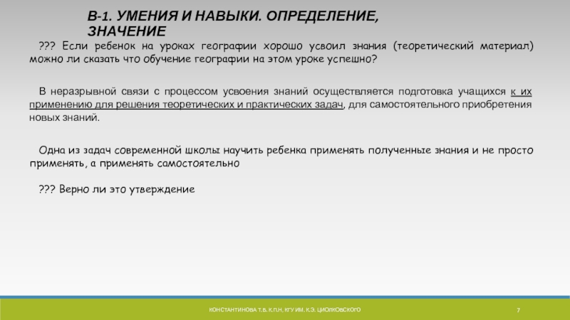 Слайд 7Константинова Т.В. к.п.н, КГУ им. К.Э. Циолковского