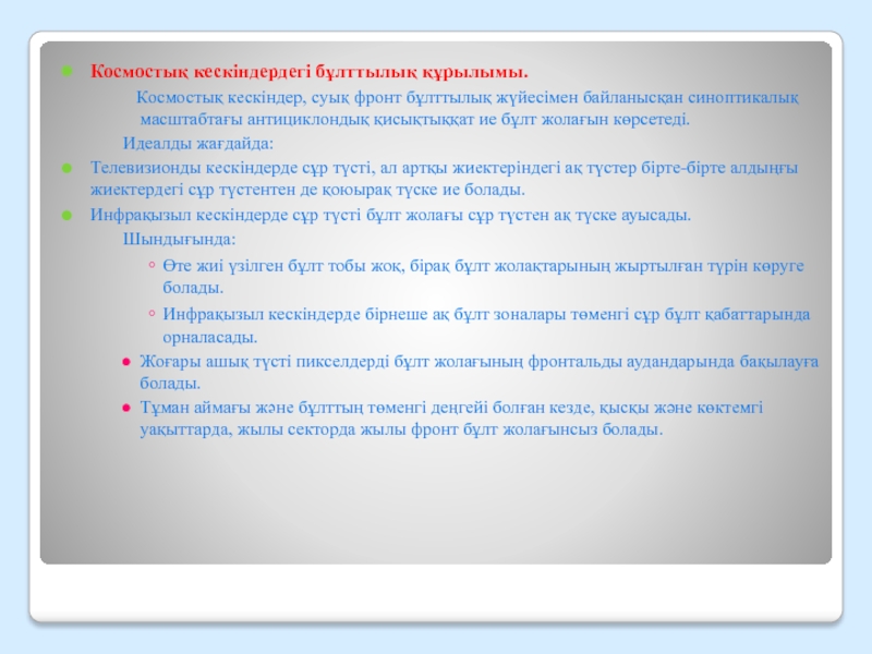 Слайд 3Космостық кескіндердегі бұлттылық құрылымы.