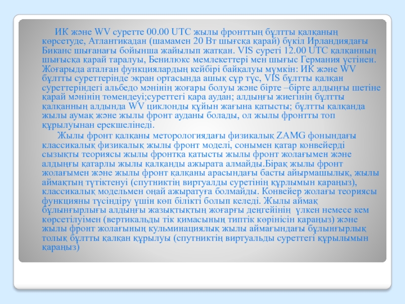 Слайд 7 Жылы фронттың бұлт жолағы инфрақызыл және