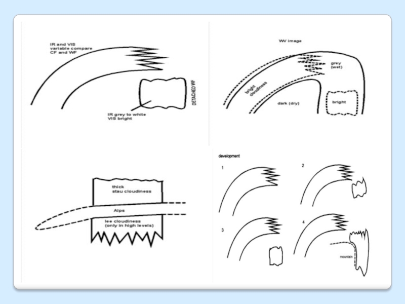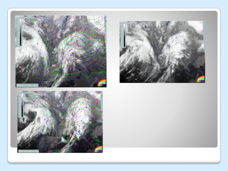 Слайд 40Жеке жылы фронт - спутниктік суреттерде бұлттылық құрылымы.