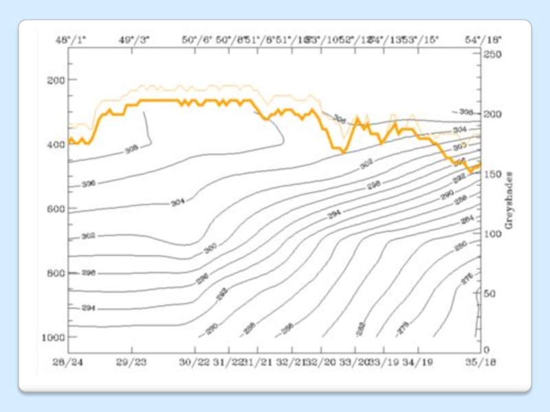 Слайд 3418 ақпан 1996/ 06;00 UTC тік; қима қара изэнтроптар қызылтым
