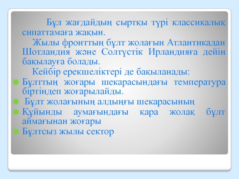 Слайд 8Жылы фронт. Метеорологиялық физикалық аумағы.