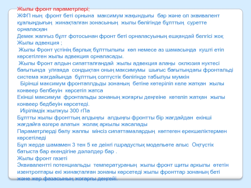 Слайд 36Жылы фронт параметрлері;