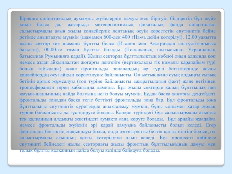 Слайд 33Бірнеше синоптикалық ауқымды жүйелердің дамуы мен бірігуін білдіретін бұл жүйе