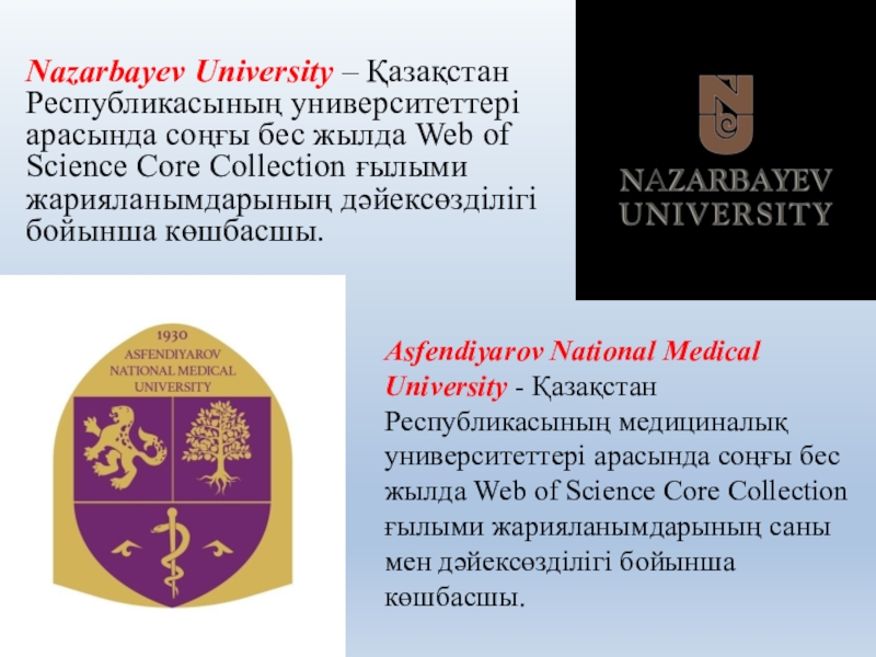Слайд 23Nazarbayev University – Қазақстан Республикасының университеттері арасында соңғы бес жылда