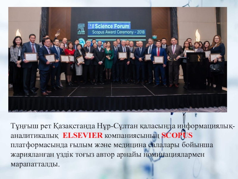 Слайд 14Тұңғыш рет Қазақстанда Нұр-Сұлтан қаласында информациялық-аналитикалық ELSЕVІER компаниясының SCOPUS платформасында