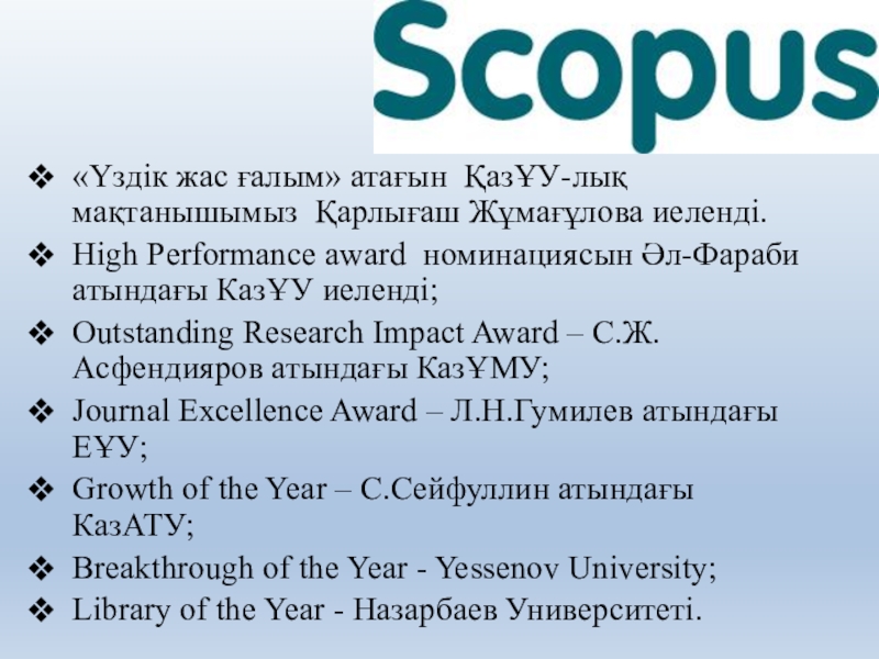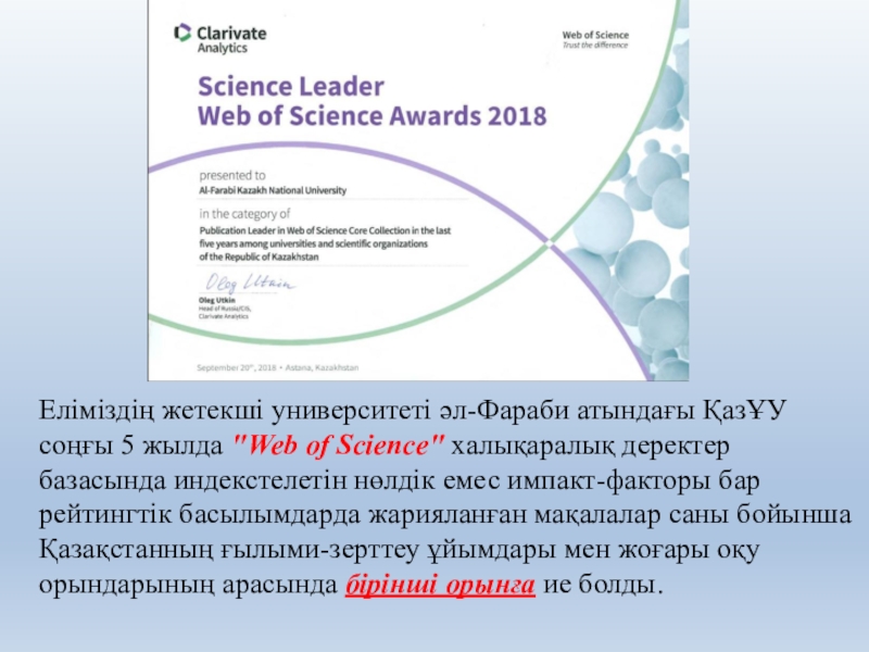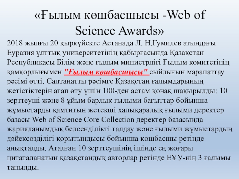 Слайд 20«Ғылым көшбасшысы -Web of Science Awards»