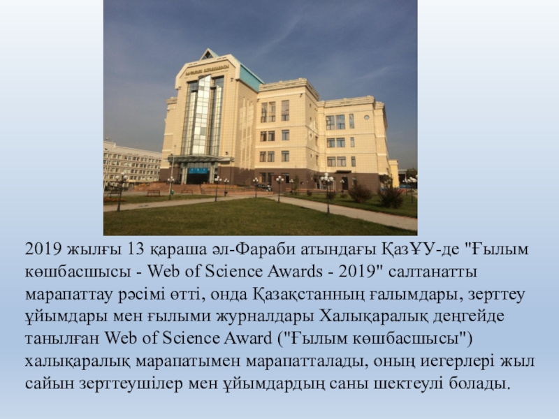Слайд 252019 жылғы 13 қараша әл-Фараби атындағы ҚазҰУ-де "Ғылым көшбасшысы -