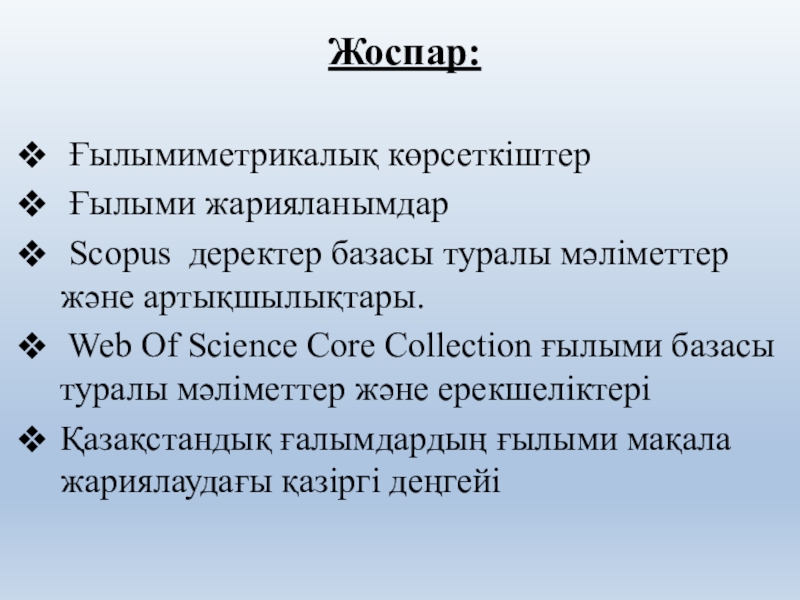 Слайд 26Қазақстандық ғалымдардың ғылыми мақала жариялаудағы қазіргі деңгейі